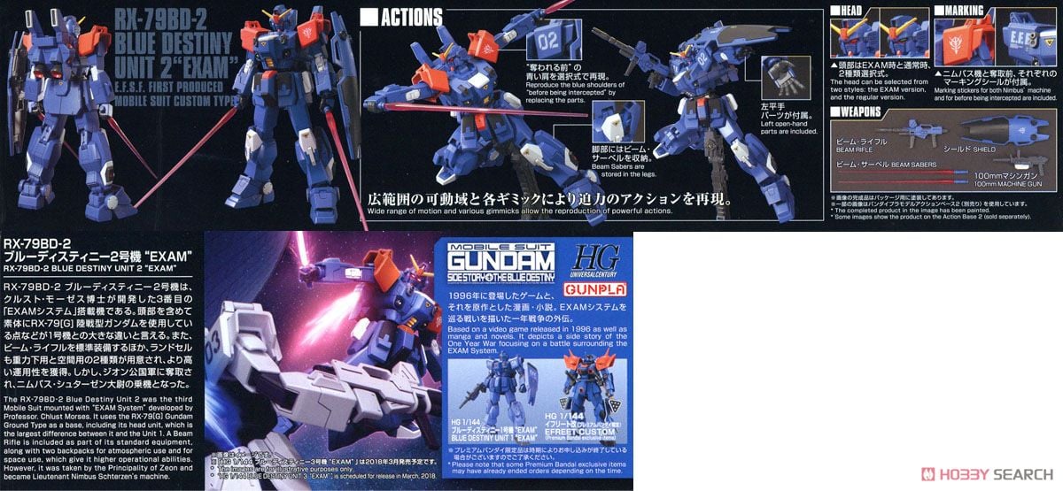 BLUE DESTINY UNIT 2 EXAM HG UC 1/144 BANDAI